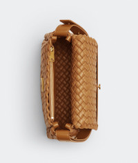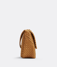 • Small padded intreccio leather shoulder bag • One interior zipped pocket, one open pocket • Metal closure Material: 100% Lambskin • Unlined • Color: Caramel • Hardware: Gold finish • Height: 20 cm | 7.8" • Width: 27 cm | 10.6" • Depth: 9 cm | 3.5" • Handle drop: 21 cm | 8.2" Made in: Italy