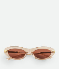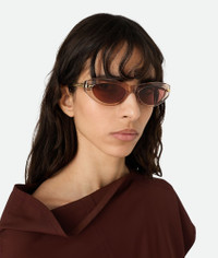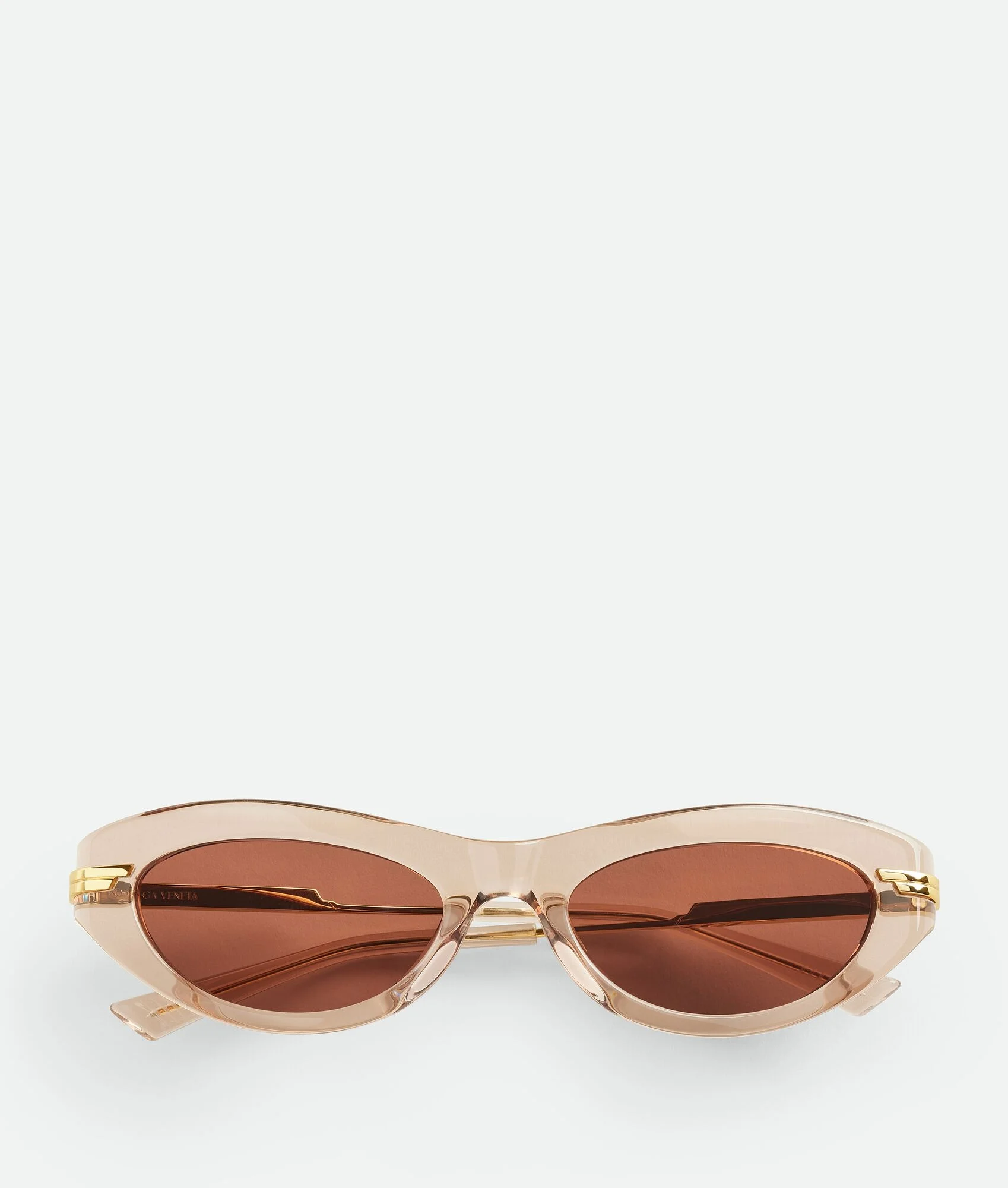 Cat eye sunglasses in recycled acetate with gold-finished metal temples. Product Details - Cat eye sunglasses in Eastman Acetate Renew, an acetate with 27% recycled content - Lenses made from polyamide with 39% bio-based content - Lens width: 53 mm | 20.9"; Bridge length: 19 mm | 7.5"; Temple length: 140millimeters - BV1368S 005 - Color: Brown - Made in: Italy - Product code: 832788V2Q302003