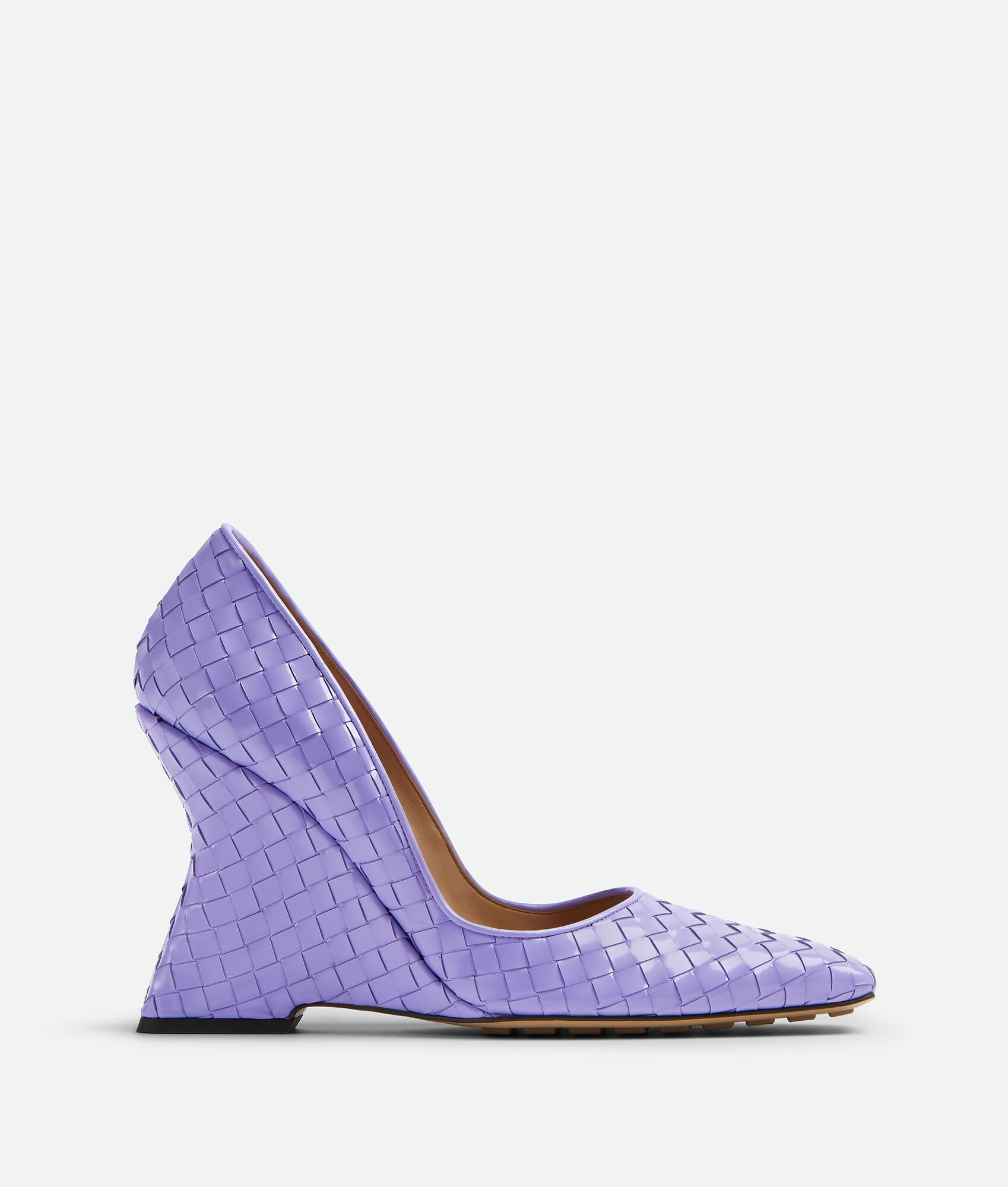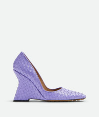 Intrecciato leather pumps. Product details • Intrecciato leather pumps Material: 100% Lambskin • Lining: Lambskin • Color: Amethyst • Bio-based rubber-injected and biodegradable leather outsole • Heel: 10 cm | 3.9" Made in: Italy