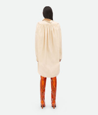 Dress with long neck and oversized silhouette realised in technical compact cotton Product details • Compact cotton dress • Relaxed long neck with button detail • Button closure • Unlined • Oversized fit Material: 72% Cotton, 20% Viscose, 8% Polyester • Color: Seashell Made in: Italy Size & fit • Model is 180 cm | 5'11" and is wearing a Bottega Veneta size 38