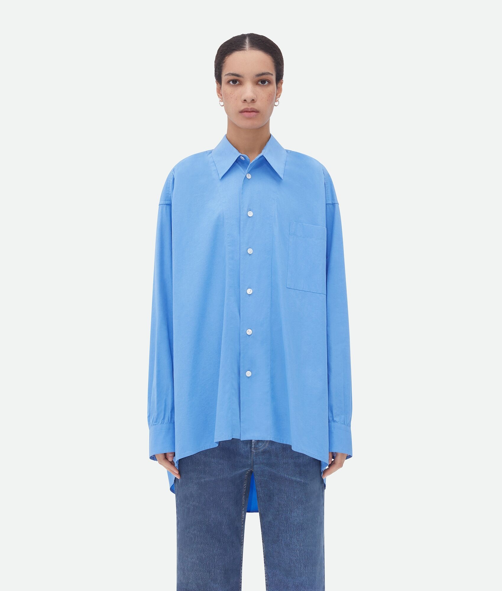 Shirt with oversized silhouette realised in technical compact cotton with a slightly Product details • Compact cotton shirt • Special label on the placket • Button closure • Oversized fit Material: 72% Cotton, 20% Viscose, 8% Polyester • Color: Admiral Made in: Italy