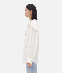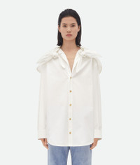 Shirt with knot neck detailing in soft compact cotton. Product Details - Compact cotton canvas shirt - Knot detail at neck - Button closure - Relaxed fit - Material: Cotton - Color: White - Made in: Italy - Product code: 788913V2BL09000 Size & Fit - Model is 180 cm | 5'11" and is wearing a Bottega Veneta size 38