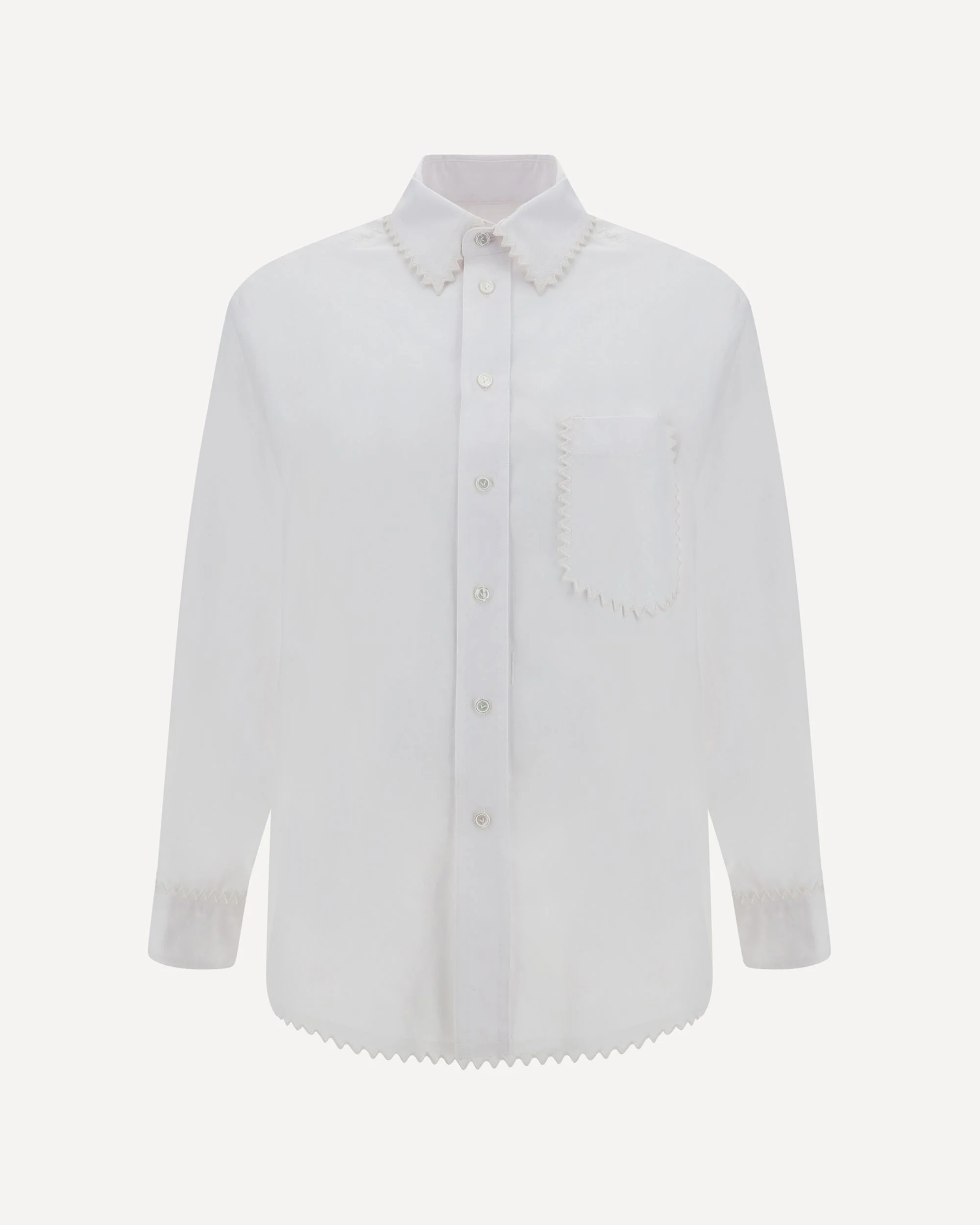 Cotton Compact Shirt by Bottega Veneta featuring classic collar, front button closure, front patch pocket, adjustable button cuffs, knurled-effect embroidered hems and piping, regular fit. DETAILS sku 775230V2BL0_9000 composition : COTTON 100% color group : WHITE gender : WOMAN season : SS24 size chart : WOMAN IT category name : SHIRTS icon : icon