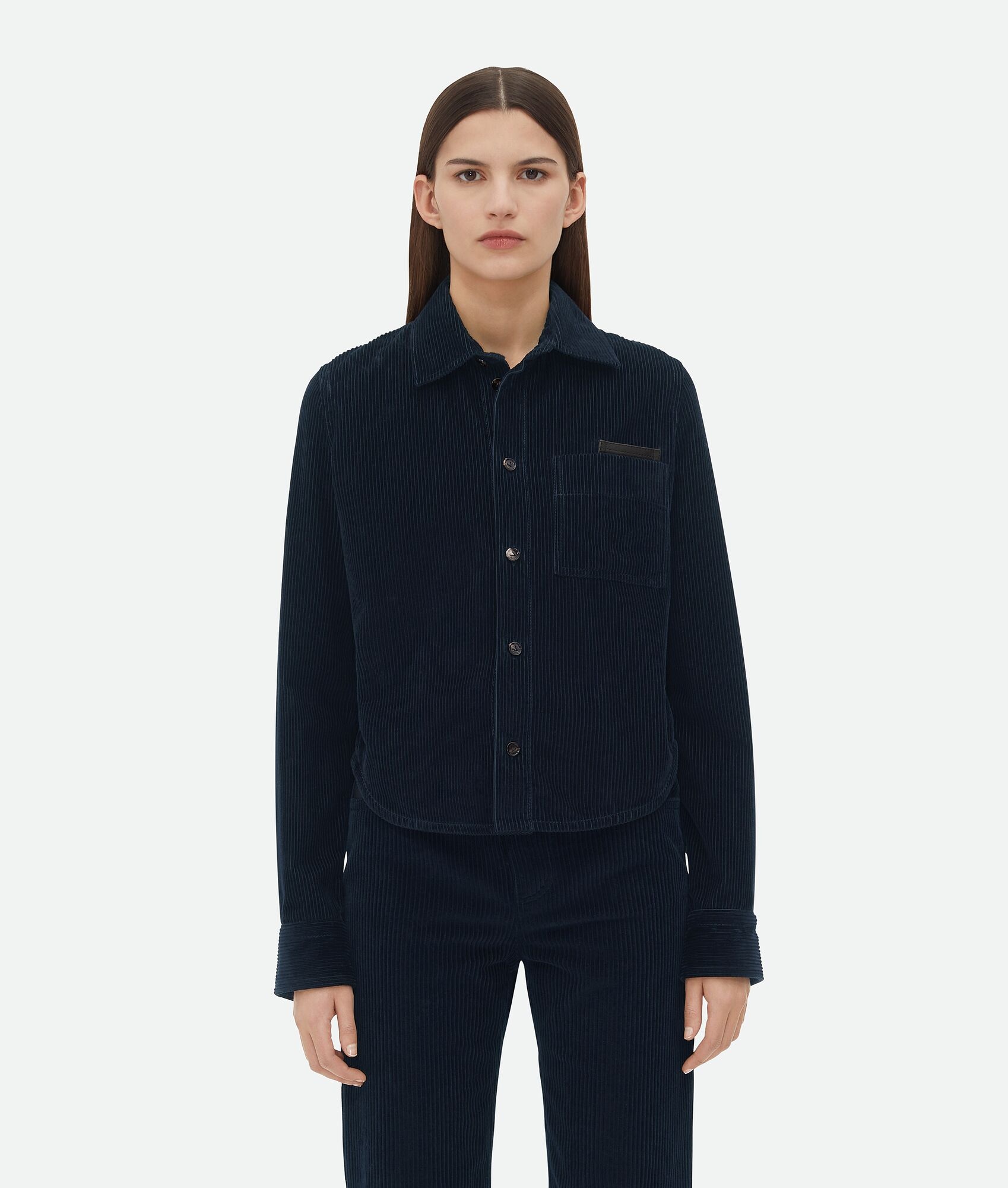 Jacket in cotton corduroy with leather pocket detail. Product details • Cotton corduroy jacket • Leather pocket detail • Button closure • Unlined • Regular fit Material: 100% Cotton • Color: Midnight Blue Made in: Italy Size & fit • Model is 177 cm | 5'9" and is wearing a Bottega Veneta size 38