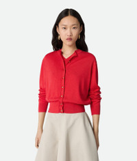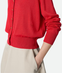 Twinset in lightweight cotton and viscose with knot button detailing. Product Details - Lightweight cotton and viscose twinset - Metal knot buttons - Regular fit - Color: Cherry Tomato - Made in: Italy - Product code: 841817V5M506299 Size & Fit - Model is 177 cm | 5'9" and is wearing a Bottega Veneta size S