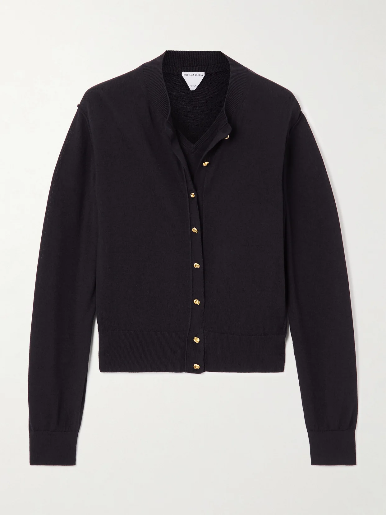 Bottega Veneta's set includes a coordinating cardigan and tank, both made from a soft cotton-blend and defined by ribbed trims. The gold-tone buttons are sculpted into the signature knot motif. Wear yours layered together or separately