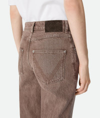 Jeans with straight leg in brown washed denim with Intrecciato suede back patch. Product Details - Brown washed jeans - Straight leg - Low waist - Intrecciato suede back patch - Button closure - Color: Brown - Made in: Italy - Product code: 841017V4ZN02082 Material - Material: 100% Cotton Size & Fit - Model is 178 cm | 5'10" and is wearing a Bottega Veneta size 38