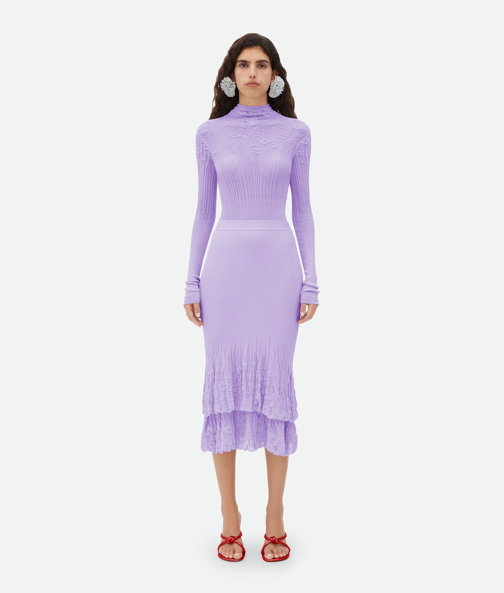 Midi Skirt with 2-in-1 construction realised in a lightweight cotton knit. Features Product Details - Cotton flowers rib 2 in 1 midi skirt - Elasticated waistband - Material: 82% Cotton, 18% Polyamide - Color: Amethyst - Made in: Italy - Product code: 774713V3MM05327 Size & Fit - Model is 176 cm | 5'9" and is wearing a Bottega Veneta size S