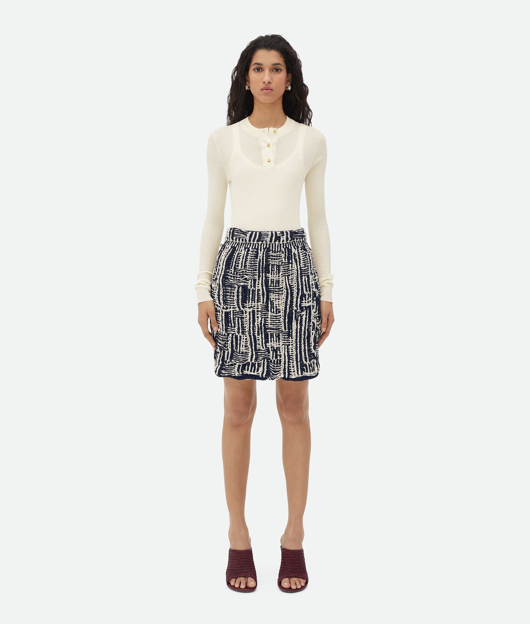 Product Details - Cotton Intrecciato midi skirt - Floating ribs - Elasticated waistband - Material: Cotton - Color: Navy/Dove - Made in: Italy - Product code: 786576V43O04124 Size & Fit - Model is 178 cm | 5'10" and is wearing a Bottega Veneta size S