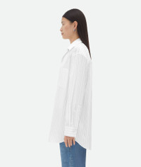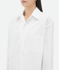 Shirt realised in classic cotton poplin with a fine pinstripe. Product details • Cotton poplin pinstripe shirt • Button closure • Unlined • Regular fit Material: 100% Cotton • Color: White/Beige Made in: Italy Size & fit • Model is 180 cm | 5'10" and is wearing a Bottega Veneta size 38