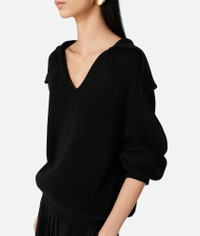 Polo jumper in midweight cotton English rib. Product Details - Midweight cotton English rib polo jumper - Relaxed fit - Material: 98% Cotton, 1% elastane, 1% polyamide - Color: Black - Made in: Italy - Product code: 820109V59X01000 Size & Fit - Model is 178 cm | 5'10" and is wearing a Bottega Veneta size S