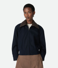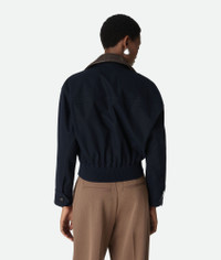 Blouson in fluid cotton twill with detachable Intrecciato leather collar. Product Details - Fluid cotton twill blouson - Detachable Intrecciato leather collar - Zip closure - Fully lined in check - Regular fit - Color: Navy - Made in: Italy - Product code: 829465V5CV04121 Material - Material: 100% Cotton Size & Fit - Model is 180 cm | 5'11" and is wearing a Bottega Veneta size 38
