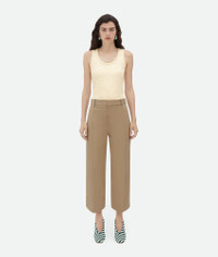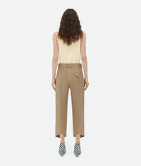 Trousers with signature curved silhouette realised in soft compact cotton twill. Product Details - Compact cotton twill trousers - Curved shape - Zipper, button, and hook closure - Material: 100% Cotton - Color: Sesame - Made in: Italy - Product code: 771735V1YO09640 Size & Fit - Model is 177 cm | 5'9" and is wearing a Bottega Veneta size 38