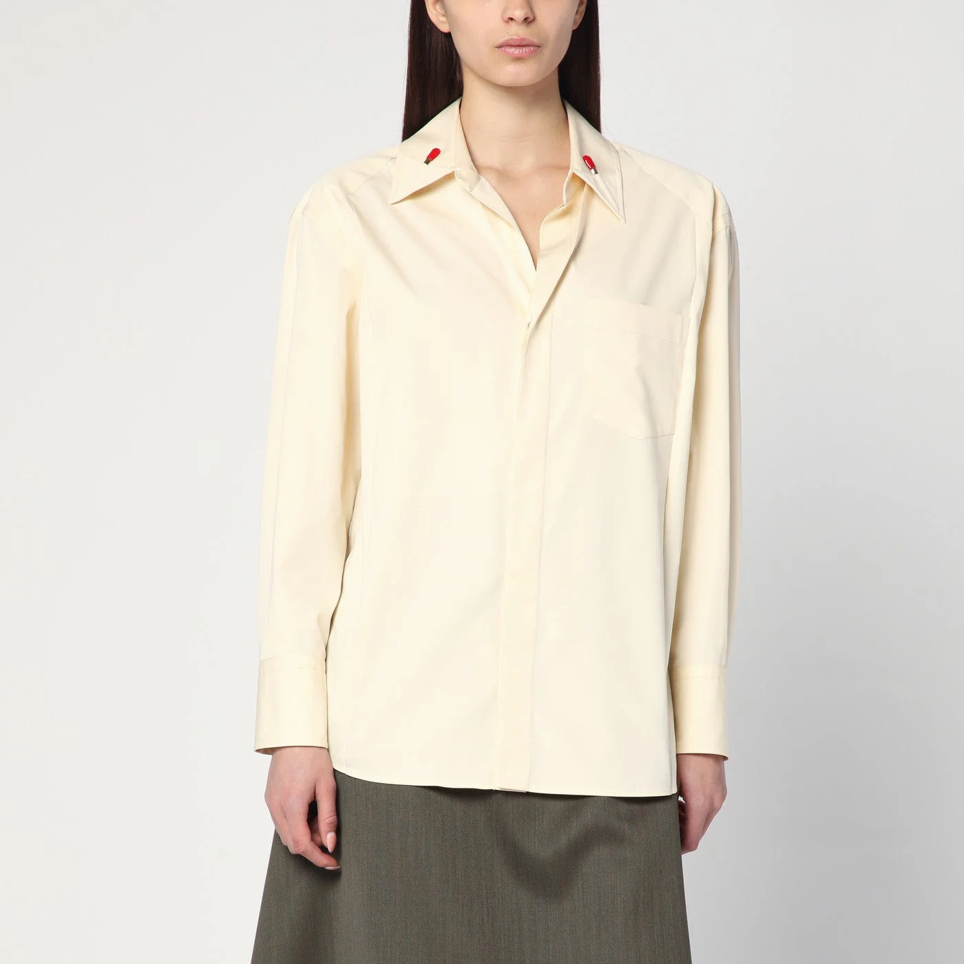 Bottega Veneta shirt in cotton and silk in cream colour characterized by an applied pocket on the chest hidden front buttoning long sleeves with buttoned cuffs collar with enamel matchstick-shaped details and a soft fit.