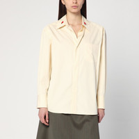 Bottega Veneta shirt in cotton and silk in cream colour, characterized by an applied pocket on the chest, hidden front buttoning, long sleeves with buttoned cuffs, collar with enamel matchstick-shaped details, and a soft fit.
