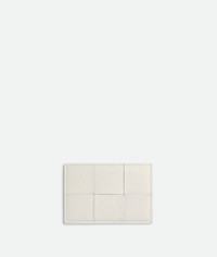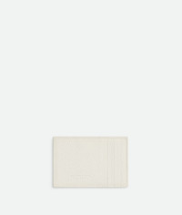 Intreccio grained leather card case. Product details • Intreccio grained leather card case • Three card slots, one central pocket Material: 100% Calfskin • Lining: Calfskin • Color: White • Height: 7.6 cm | 3" • Width: 11.4 cm | 4.5" • Depth: 0.5 cm | 0.2" Made in: Italy