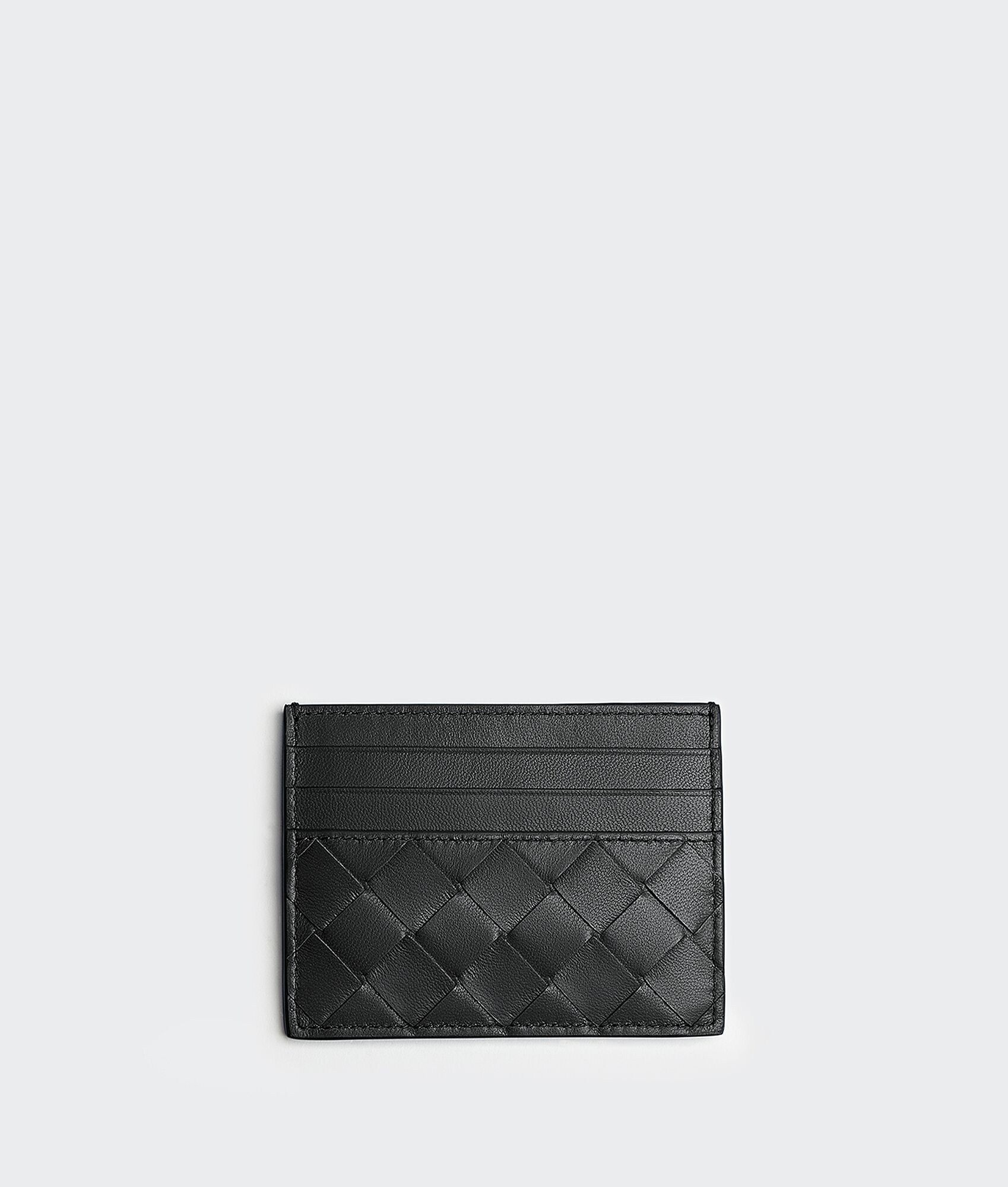Intrecciato leather card case. Product details • Intrecciato leather card case • Six card slots, one central pocket Material: 100% Lambskin • Lining: Calfskin • Color: Black • Height: 8 cm | 3.1" • Width: 10.5 cm | 4.1" • Depth: 0.5 cm | 0.2" Made in: Italy