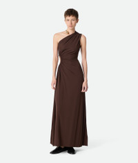 Long dress in matte crepe viscose jersey, featuring an integrated metal drop necklace. Product Details - Matte crepe viscose jersey long dress - Integrated metal drop necklace - Zip closure - Regular fit - Color: Clove - Made in: Italy - Product code: 847278V4YX02487 Material - Material: 100% Viscose Size & Fit - Model is 179 cm | 5'10" and is wearing a Bottega Veneta size 38