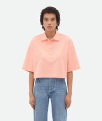 Cropped polo knitted in soft piquet cotton. Product Details - Cropped cotton piquet polo - "BV" embroidery on the front - Button closure - Relaxed cropped fit - Material: Cotton - Color: Powder Pink - Made in: Italy - Product code: 777596V01G05095 Size & Fit - Model is 178 cm | 5'10" and is wearing a Bottega Veneta size S