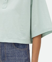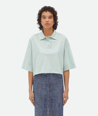Polo with cropped silhouette realised in cotton piquet with brand embroidery on the Product details • Cropped cotton piquet polo • "BV" embroidery on the front • Button closure • Relaxed cropped fit Material: 100% Cotton • Color: Light Cyan Made in: Italy Size & fit • Model is 178 cm | 5'10" and is wearing a Bottega Veneta size S