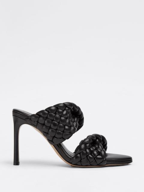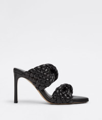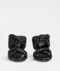 • Twisted and padded Intreccio leather mules Material: 100% Lambskin • Unlined • Color: Black • Rubber-injected leather outsole • Heel: 9.5 cm | 3.7" Made in: italy