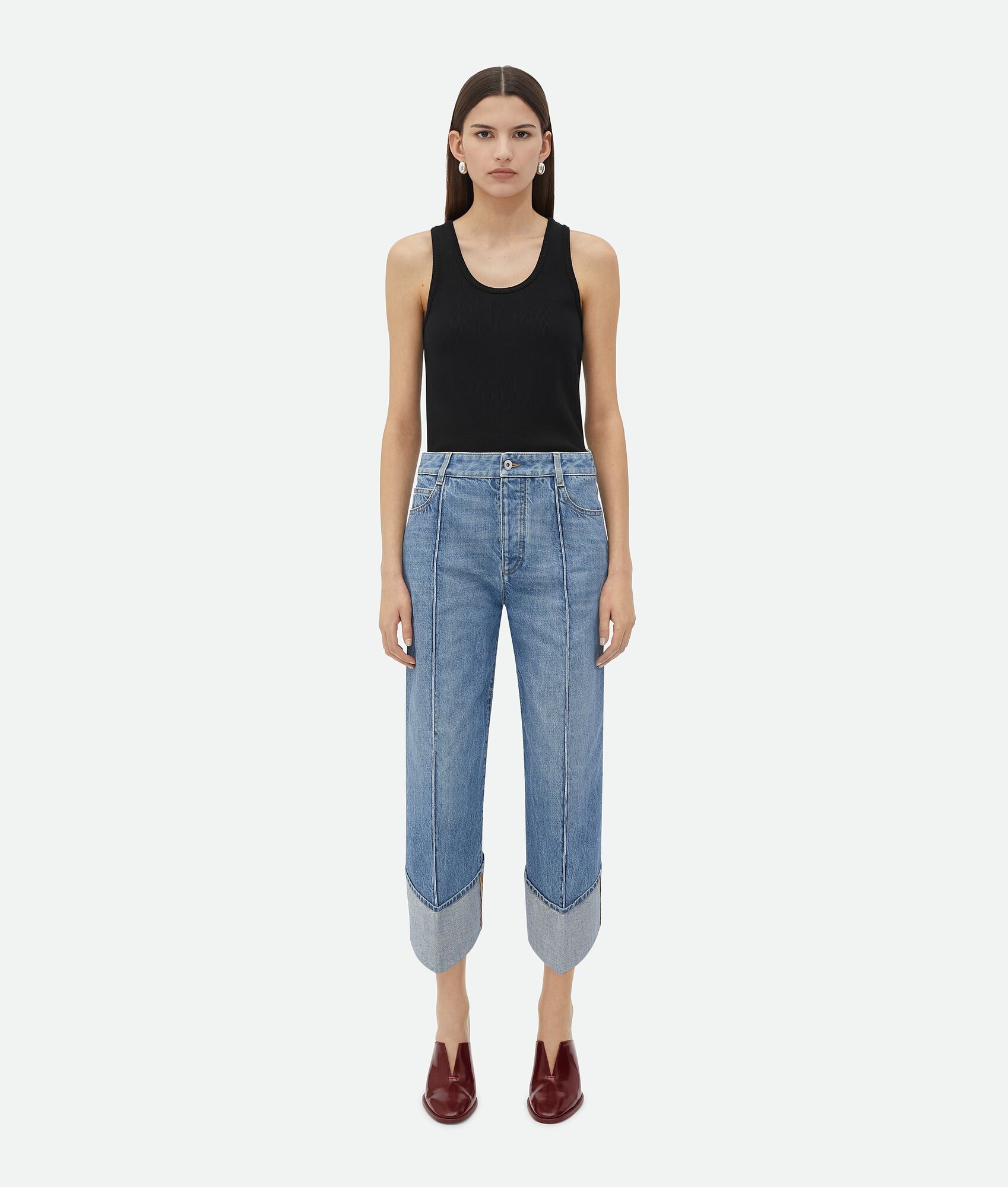 Product Details - Vintage indigo washed denim - Curved shape - Button closure - Material: Cotton - Color: Mid Blue - Made in: Italy - Product code: 792976V42W04715 Size & Fit - Model is 177 cm | 5'9" and is wearing a Bottega Veneta size 38