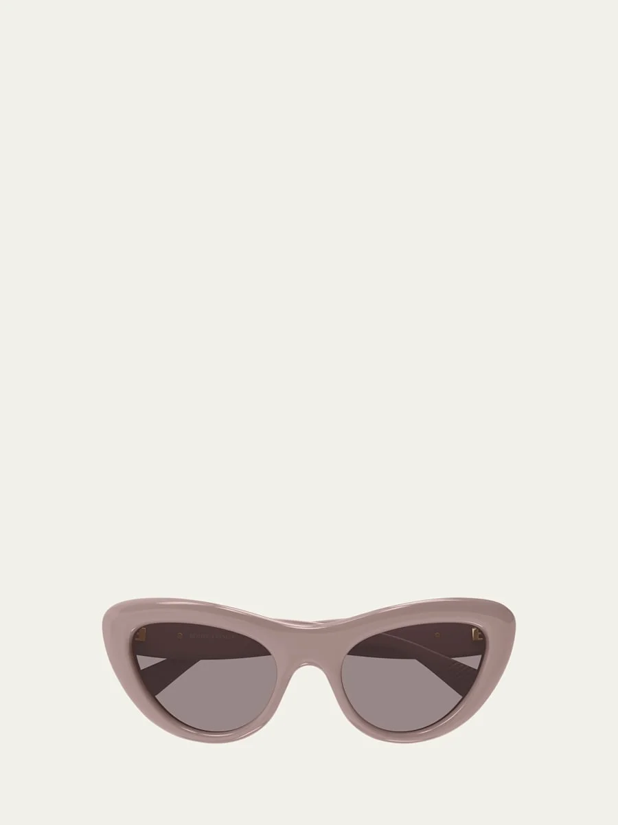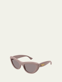 Bottega Veneta "BV1282S" curvy cat-eye sunglasses in acetate and Amni® nylon Lens/bridge/temple (in mm): 53-21-140 Solid lenses Saddle nose bridge Ribbon logo on temples Wide, tapered arms 100% UVA/UVB protection Made in Italy Proposition 65 warning for California residents Online Inquiries: BGS21_D4YB3| Store Inquiries: #4823353