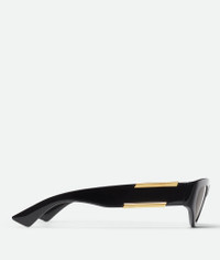 Cat eye sunglasses in polyamide with gold-finished split ribbon detailing. Product Details - Reinterpretation of the classic Bottega Veneta ribbon detail, split at the top and bottom of the temple - Lenses made from polyamide with 39% bio-based content - Frame made from polyamide with 60% bio-based content - Lens width: 53 mm | 2.1"; Bridge length: 18 mm | 0.7"; Temple length: 145 mm | 5.7" - BV1407S 002 - Color: Black/Gray - Made in: Japan - Product code: 841169VBL801049 Material - Material: Polyamide