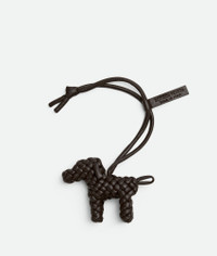 Charm realised in Intreccio nappa leather with dog shape, featuring a leather lanyard. Product Details - Intreccio nappa leather dog charm with leather lanyard - Bottega Veneta leather tag - Leather lanyard designed to be attached to any handle - Material: Lambskin - Unlined - Color: Fondant - Height: 7.2 cm | 2.8" - Width: 8.2 cm | 3.2" - Depth: 3 cm | 1.2" - Strap Drop: 17 cm | 6.7" - Made in: Italy - Product code: 807068V3D812113