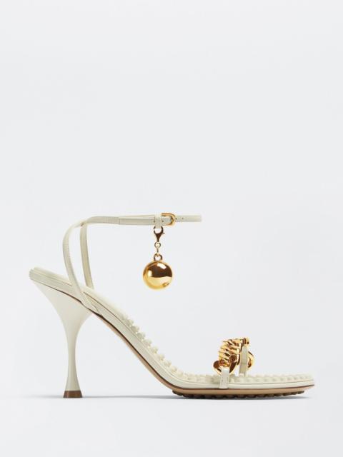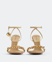 • Leather sandals • Chain and detachable sphere embellishment • Moulded rubber insole Material: 100% Lambskin • Lining: Lambskin • Color: Cane Sugar • Hardware: Gold finish • Rubber-injected leather outsole Heel: 9 cm I 3.5" Made in: Italy