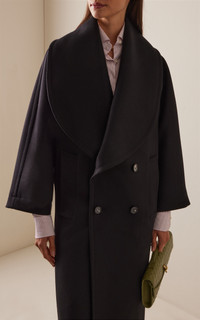 Bottega Veneta (meaning "Venetian Artisanal Workshop" in its native Italian) unites different people, ideas, and perspectives with an unwavering commitment to excellence and a unique vision of luxury. With solid foundation, each season builds off the other, delivering new iterations of coveted house signatures with contemporary, yet timeless, flare. Tailored from a felted stretch-wool, this double-breasted coat features oversized proportions in the shawl and sleeves. PRODUCT DETAILS - Fall '25 - Zip fastening - Composition: 98% wool, 1% polyamide, 1% elastane - Dry clean - Made in Italy