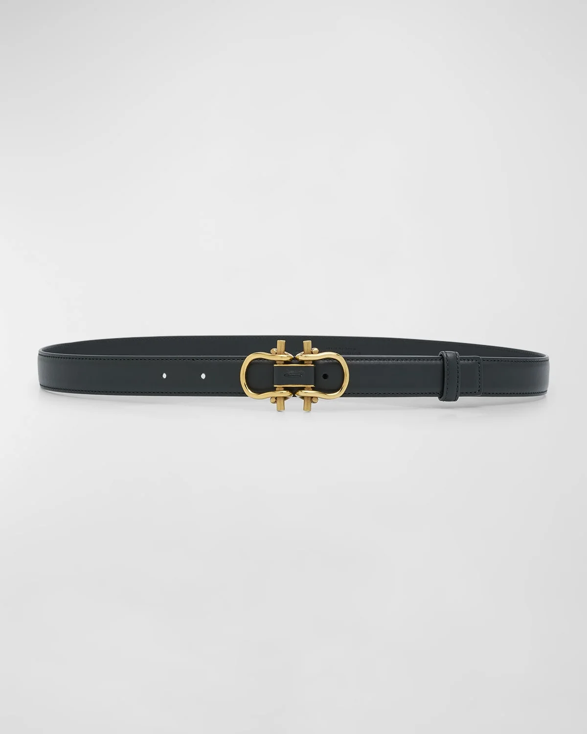 - Bottega Veneta belt in leather with brass hardware - Approx. 1"W - Cut to size - Adjustable fit - Double horseshoe buckle - Tonal stitching - Made in Italy