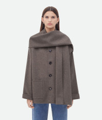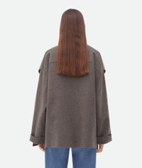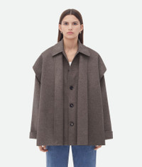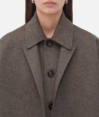 Coat with roll up sleeves realised in soft lightweight double wool cashmere with Product details • Light double wool cashmere coat • Rolled-up sleeves • Button closure • Relaxed fit Material: 80% Wool, 20% Cashmere • Color: Peppercorn Melange Made in: Italy