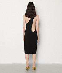 • One shoulder knit dress in compact frisee • Knee-length • Asymmetric deep scoop back DETAILS Composition: 78% Viscose, 22% Polyamide Color: Nero Made in Italy