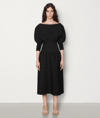 Balloon knit midi dress • Knit dress with exaggerated balloon sleeves • Ribbed waist and cuffs • Boat neck DETAILS Composition: 69% Viscose, 14% Polyester, 13% Polyamide, 4% Elastane Color: Nero Made in Italy