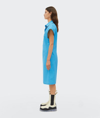 • Knee-length dress in technical toile • Cap sleeves • Polo collar with three oval frame buttons on the placket • Unlined • Nipped in at the waist DETAILS Composition: 90% Cotton, 10% Polyurethane Color: Swimming Pool Made in Italy