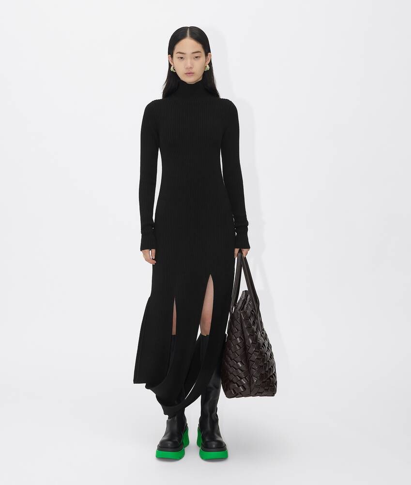 • Ribbed wool dress with slashed hem • Unlined • Regular fit Material: 96% Wool 3% Polyamide 1% Elastane • Color: Black Made in: italy