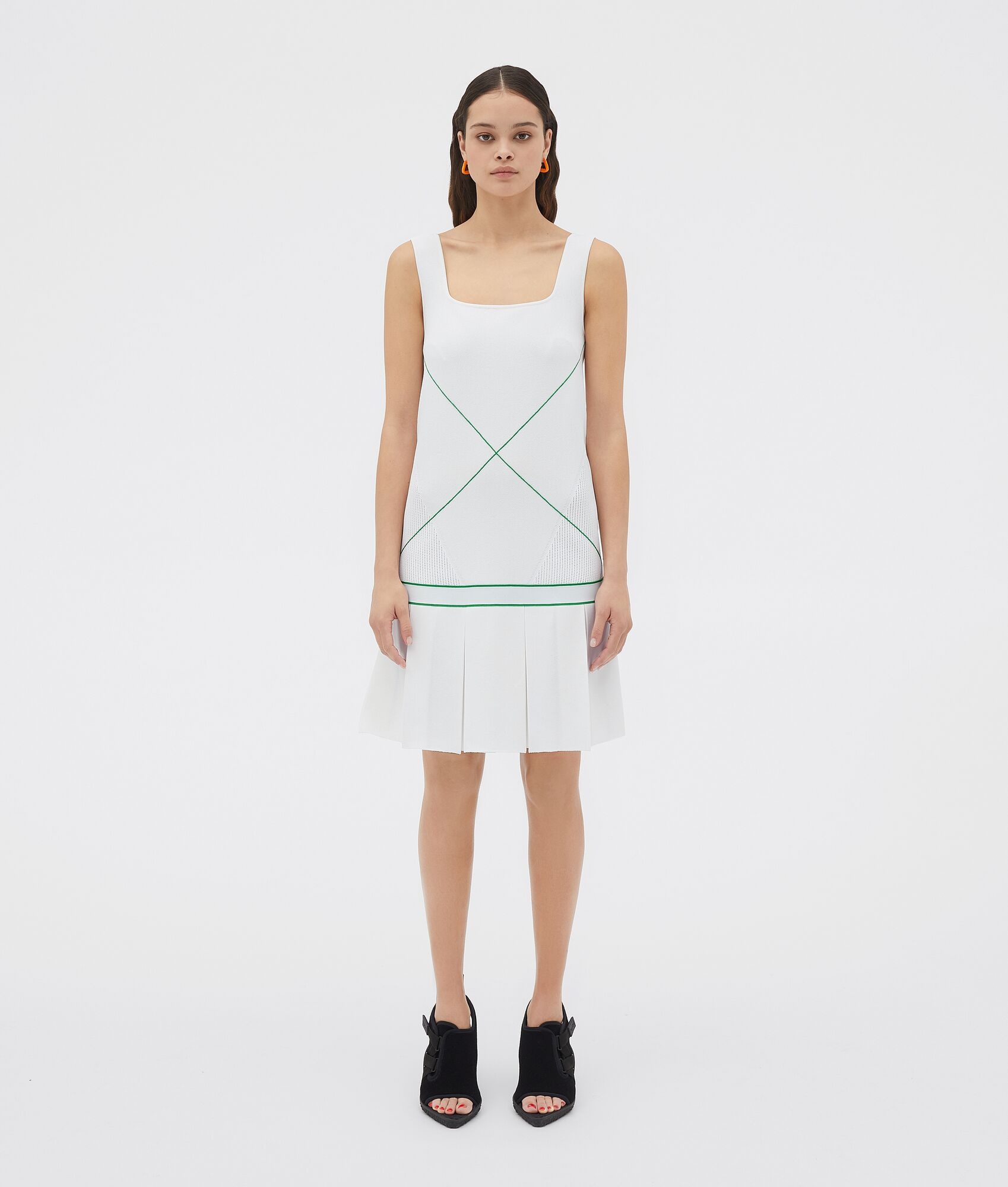 • Lightweight viscose blend dress • Reverse embroidered logo elastic • No closure • Unlined • Regular fit Material: 83% Viscose, 17% Polyester • Color: White Made in: italy