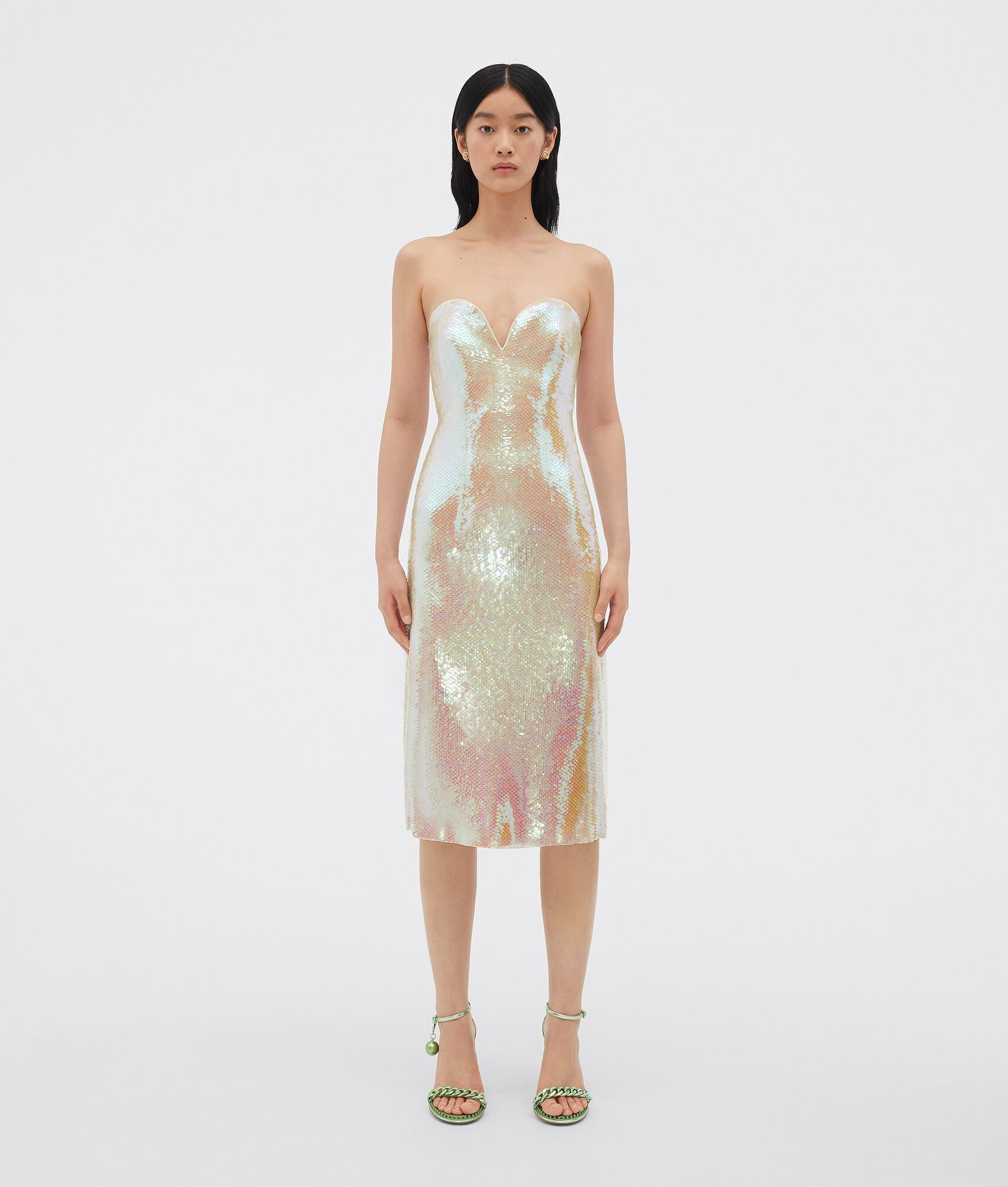 • Viscose dress with iridescent sequins • Integrated bustier • Zip closure • Slim fit Material: 100% Viscose • Color: Iridescent Made in: Italy