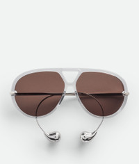 Aviator sunglasses crafted from Eastman Acetate Renew, an acetate with 27% recycled Product Details - Lenses made from polyamide with 39% bio-based material - Metal temples featuring the signature drop - BV1273S 009 - Material: Eastman Acetate Renew - Color: Grey/Brown - Made in: Japan - Product code: 769205V2Q301229