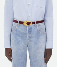 Leather belt. Product details • Leather belt • Buckle closure Material: 100% Calfskin • Lining: Calfskin • Color: Barolo • Hardware: Brass finish • Height: 2 cm | 0.8" • Depth: 0.5 cm | 0.2" Made in: Italy