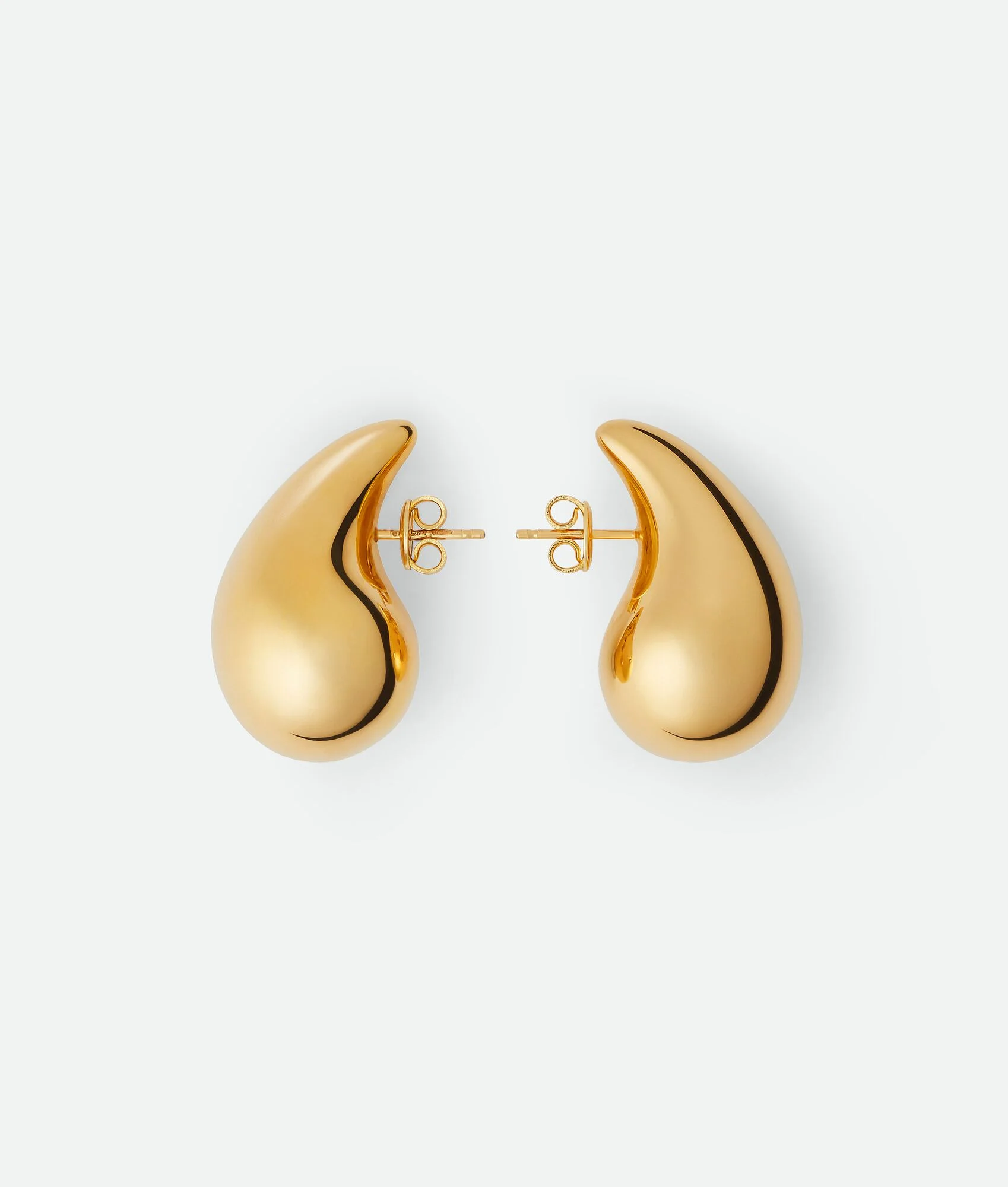 Earrings with signature drop shape in ultra lightweight 18k gold-finished sterling Product Details - 18k gold-finish sterling silver small earrings - Length: 30 mm | 1.2" - Width: 20 mm | 0.8" - Material: 925 Sterling Silver - Color: Yellow Gold - Due to hygiene-related reasons, this piece may not be returned - Made in: Italy - Product code: 716783VAHU08120