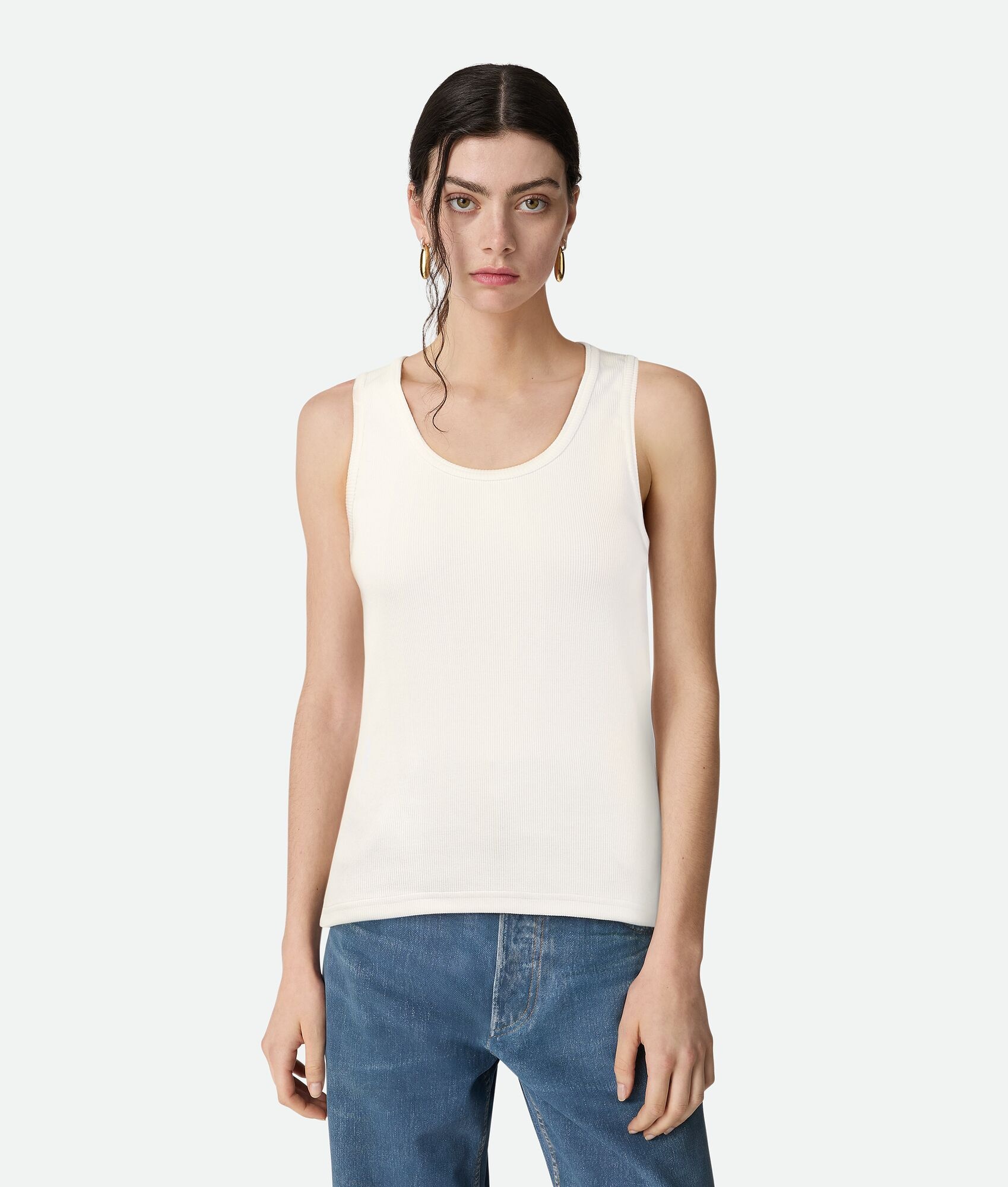 Stretch ribbed cotton tank top. Product Details - Stretch ribbed cotton tank top - Slim fit - Material: 95% Cotton, 5% Elastane - Color: Chalk - Made in: Italy - Product code: 715043V2I509071 Size & Fit - Model is 176 cm | 5'9" and is wearing a Bottega Veneta size S