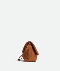 Product Details - Intrecciato suede leather pouch with flap - One main compartment - Drawstring closure - Leather loop attachment for shoulder carry - Lining: Nylon - Color: Amber - Hardware: Gold finish - Made in: Italy - Product code: 857657V5ZZ02588 Material - Material: Calfskin Size & Fit - Height: 19 cm (7.5") - Width: 33 cm (13.0") - Depth: 8 cm (3.1") - Handle Drop: 45 cm (17.7") - Fits iPhone 16 Pro Max, a credit card case, airpods and keys.