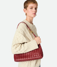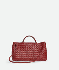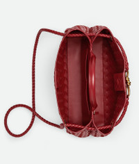 Top handle bag with elongated silhouette in supple Intrecciato leather with signature Product Details - East-West Intrecciato leather top handle bag with sliding cross-body strap - Compartmented interior with one zippered pocket, two open pockets - Magnetic closure - Material: lambskin - Lining: Lambskin bonded Intrecciato - Color: Rosewood - Hardware: Brass finish - Height: 18 cm | 7.1” - Width: 29 cm | 11.4” - Depth: 10 cm | 3.9” - Handle drop: 8 cm | 3.1” - Strap drop: 55.5 cm | 21.8” - Made in: Italy - Product code: 766010VCPP16565