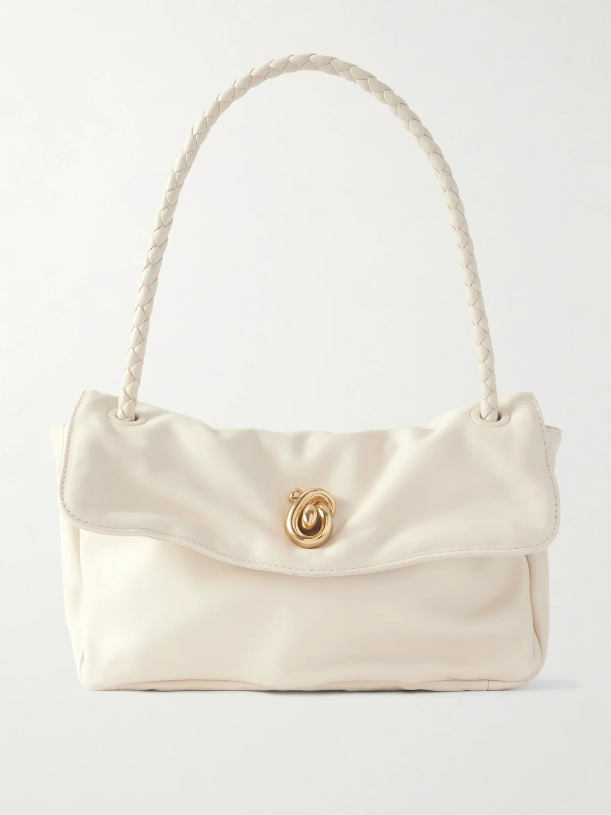 Embellished Intrecciato-trimmed Leather Shoulder Bag