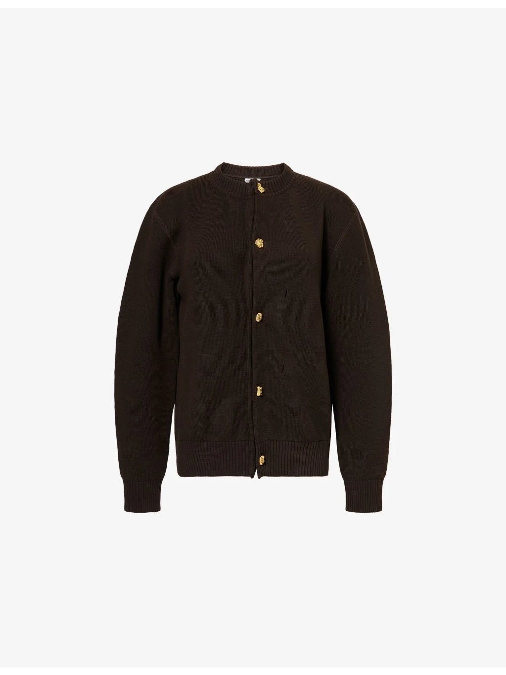 PRODUCT DETAILS - Bottega Veneta wool and cotton-blend cardigan - 51% wool, 49% cotton - Button fastening - Relaxed fit, round neck, long sleeves, gold-tone embossed buttons, two rows of button holes, ribbed trims - Dry clean - Made in Italy - True to size - Model is 5ft 10in/1.78m and wears a size small - Midweight, stretchy Ref: R04604368