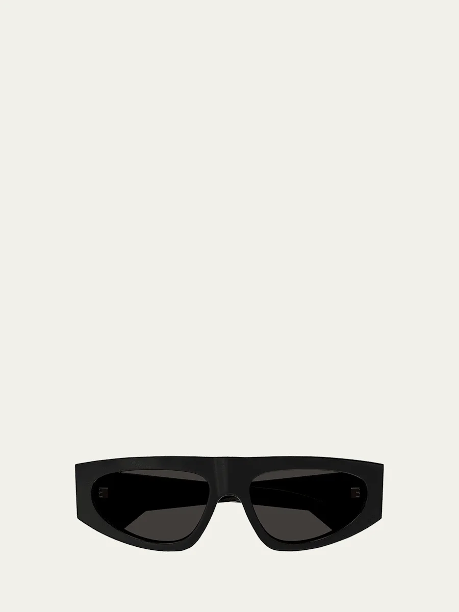 Bottega Veneta "BV1277S" flat-top rectangle sunglasses in acetate Lens/bridge/temple (in mm): 57-17-140 Solid lenses Saddle nose bridge Engraved logo on temples Wide, tapered arms 100% UVA/UVB protection Made in Italy Proposition 65 warning for California residents Online Inquiries: BGS21_D4UHY| Store Inquiries: #4706204