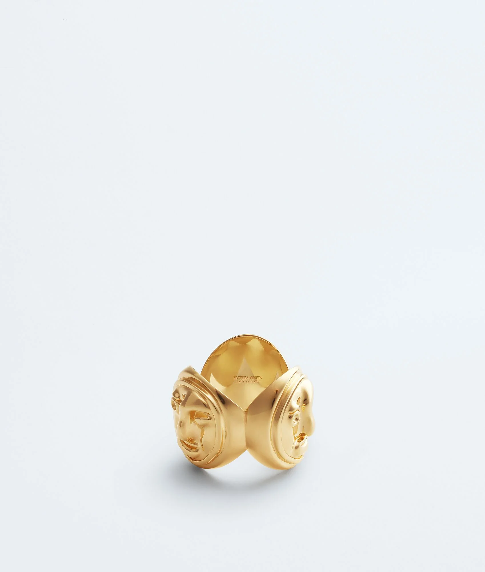 Ring with abstract faces made from 18k gold-finish sterling silver. Product Details - 18k gold-finish sterling silver ring - Abstract Face detail - Color: Yellow Gold - Made in: Italy - Product code: 865836VAHU08120 Material - Material: sterling silver Size & Fit - Width: 19 mm | 0.7" - Thickness: 5.6 mm | 0.22"