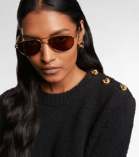Polished and sculptural, the Fin aviator sunglasses embody the contemporary elegance of Bottega Veneta. The pair is crafted from metal and features rounded frames. Product Details - Frame material: metal - Frame color: gold - Lens filter category 3 - Lens color: brown - Made in Italy - Includes: case, cleaning cloth - The color of the case may vary - Item number: P01100224 Size & Fit - Lens width: 56mm-2.2" - Bridge size: 17mm-0.65" - Earpiece length: 140mm-5.5"
